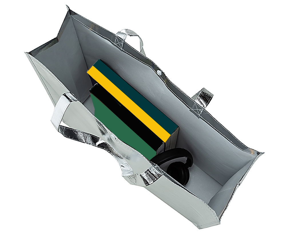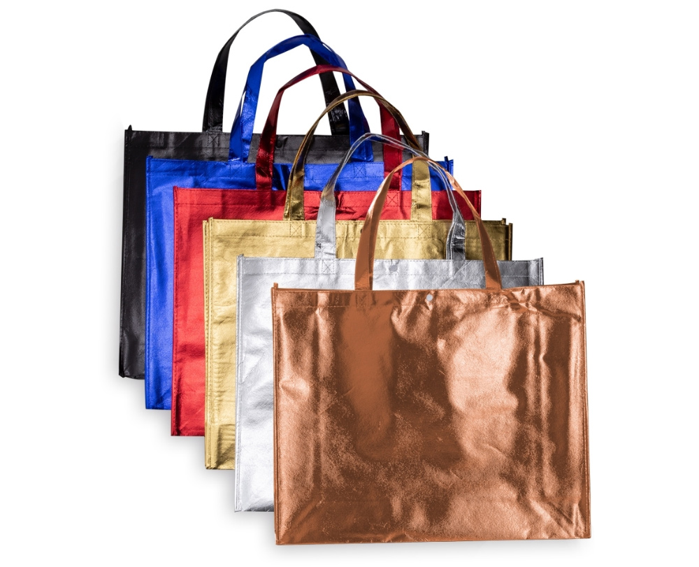 Confeccionada em TNT com revestimento laminado e botão plástico para fecho.