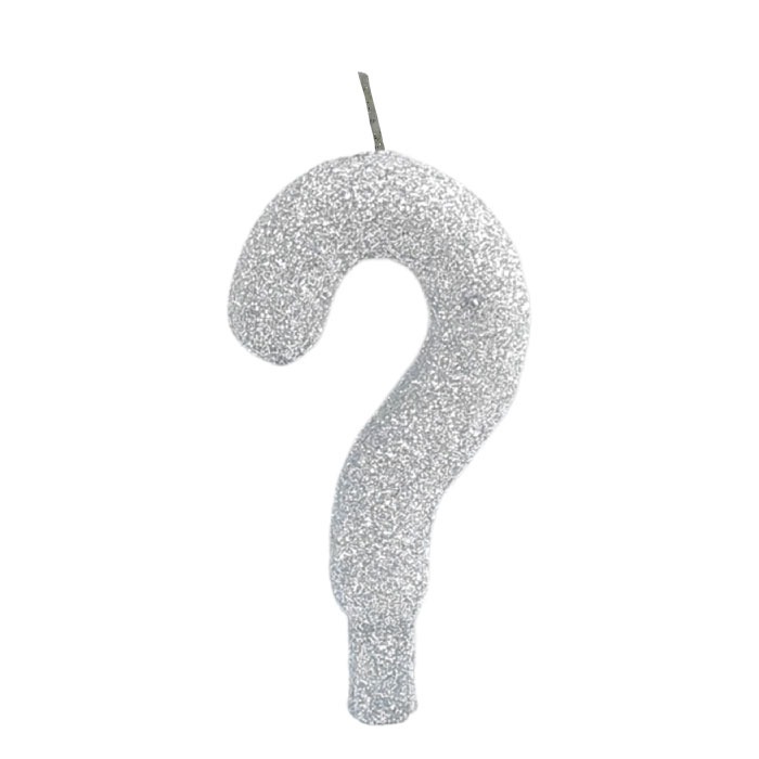 Vela premium revestida com gliter na cor prata numero ? (Interrogação)