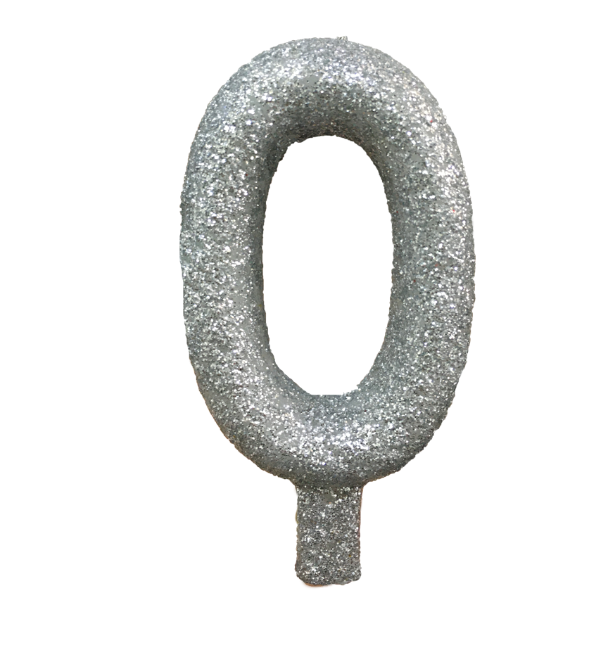 Vela premium revestida com gliter na cor prata numero 0